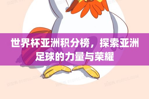 随着足球运动的普及与发展,亚洲足球实力逐渐崛起,世界杯亚洲积分榜成为球迷关注的焦点,这份积分榜不仅反映了亚洲各国的足球水平,更是他们努力与拼搏的见证,本文将深入探讨世界杯亚洲积分榜的背后故事,带您领略亚洲足球的力量与荣耀。
