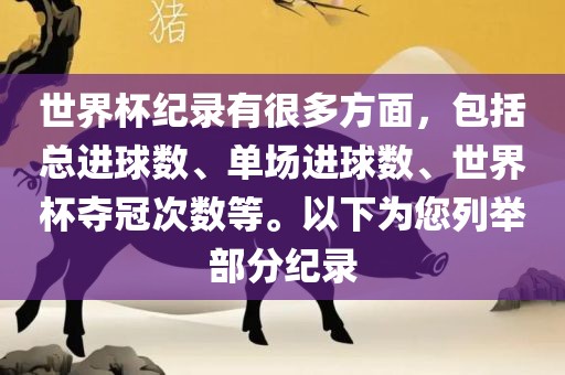 世界杯纪录有很多方面,包括总进球数、单场进球数、世界杯夺冠次数等。以下为您列举部分纪录