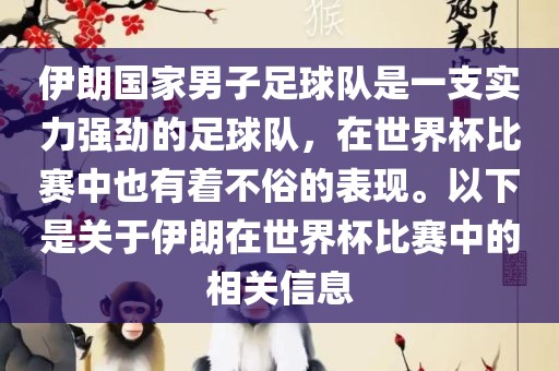 伊朗国家男子足球队在世界杯比赛中是一支备受关注的球队,他们有着强大的实力和潜力,并在比赛中展现出顽强的拼搏精神和团队合作精神。