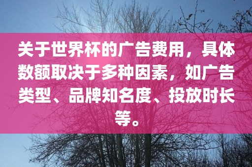 关于世界杯的广告费用,具体数额取决于多种因素,如广告类型、品牌知名度、投放时长等。