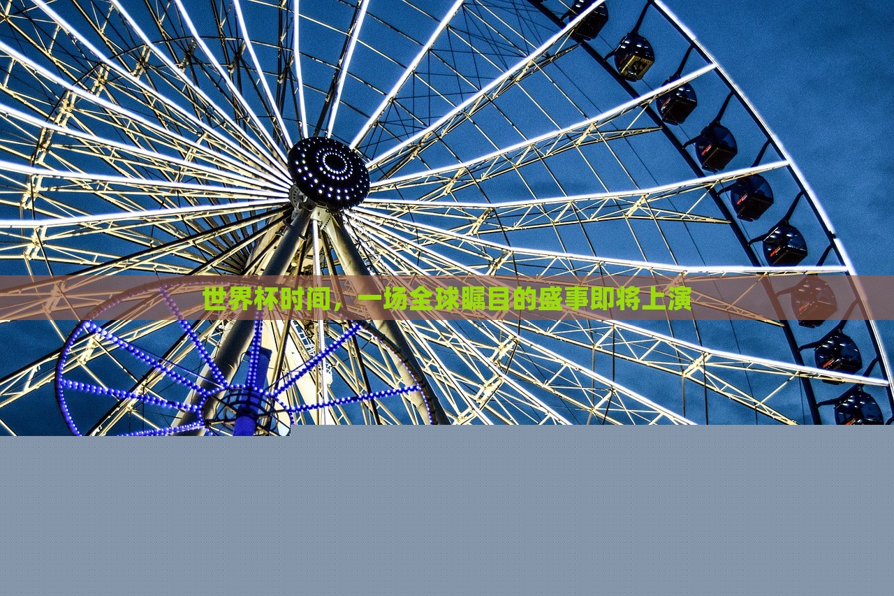 世界杯时间即将来临,让我们共同期待这场全球盛事的到来,通过本文的介绍,相信您对世界杯的时间安排有了更详细的了解,让我们锁定比赛时间,与全球球迷一起分享这场足球盛宴的激情与欢乐!