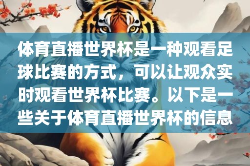 体育直播世界杯是一种观看足球比赛的方式,可以让观众实时观看世界杯比赛。以下是一些关于体育直播世界杯的信息