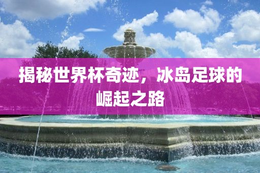 摘要:本文揭示了世界杯上的奇迹,冰岛足球的崛起之路。从基础建设的改革到足球文化的普及,冰岛足球经历了巨大的变革。通过国家队的出色表现和球员的团结协作,冰岛在足球领域取得了令人瞩目的成就。他们的成功不仅仅是一场比赛的胜利,更是整个国家努力和坚持的象征。这篇报道将带你领略冰岛足球的崛起之路,为足球爱好者提供了深刻的启示。